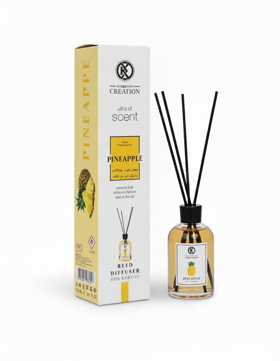 Bring tropical elegance to your home with the Kreasyon Pineapple Diffuser, a perfect blend of freshness and sophistication. Its delicate fruity aroma infused with natural oils creates a refreshing and long-lasting fragrance that transforms any room into a vibrant oasis. Designed with a sleek glass bottle and fiber sticks for even diffusion, it adds both style and serenity to your space. Ideal for living rooms, bedrooms, or offices — experience the charm of Kreasyon in every breath.